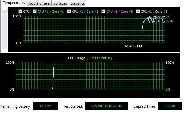 Во-вторых, странная ситуация с мониторингом температуры вообще. У ноутбуков с 2630QM система срабатывала уже где-то на 92-93 градусах, снижая частоту и напряжение. А здесь процессор дошел почти до 100 градусов, т. е. до своего предела по спецификации.