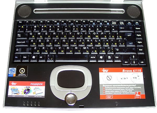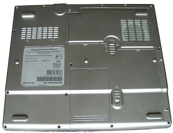 Расположение отсека жесткого диска под блоком тачпэда позволяет уменьшить нагрев площадок под руками. Да и в целом ноутбук греется не сильно. А вот шумность… При максимальных оборотах вентилятора, Brava 4115 заметно шумнее настольного компьютера, да и включается вентилятор достаточно часто. Но тут уж ничего не поделаешь — процессор-то десктопный.