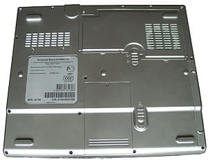 Снизу — отсек жесткого диска и фиксатор аккумуляторной батареи.