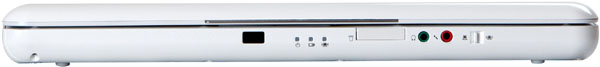 Расположение портов и разъемов — довольно стандартно. На правой панели мы видим два порта USB, DVD-RW и разъем для антенны.