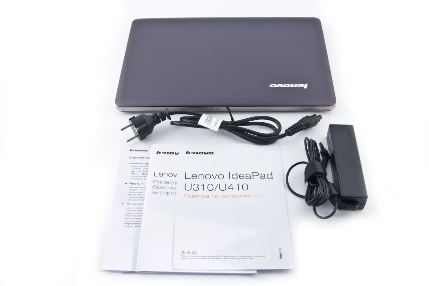 Интересно, что коробки U310 и U410 внутри организованы по-разному: дополнительный сектор, в котором находится блок питания и сетевой кабель, у U310 находится в верхней части коробки, а у U410 — сбоку от ультрабука, поэтому у коробок разные пропорции.