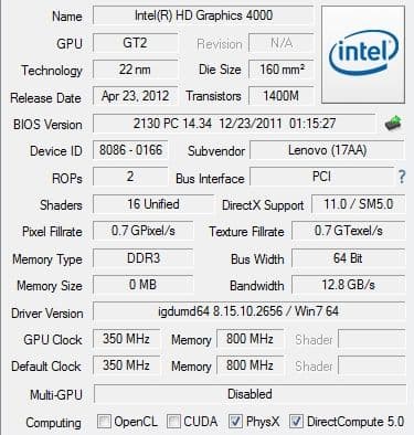 | Видеоподсистема | Intel HD Graphics 4000 |