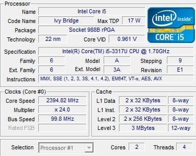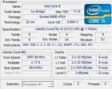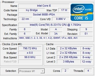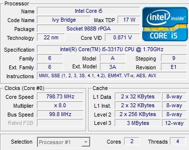 | Процессор | Intel Core i5-3317U |