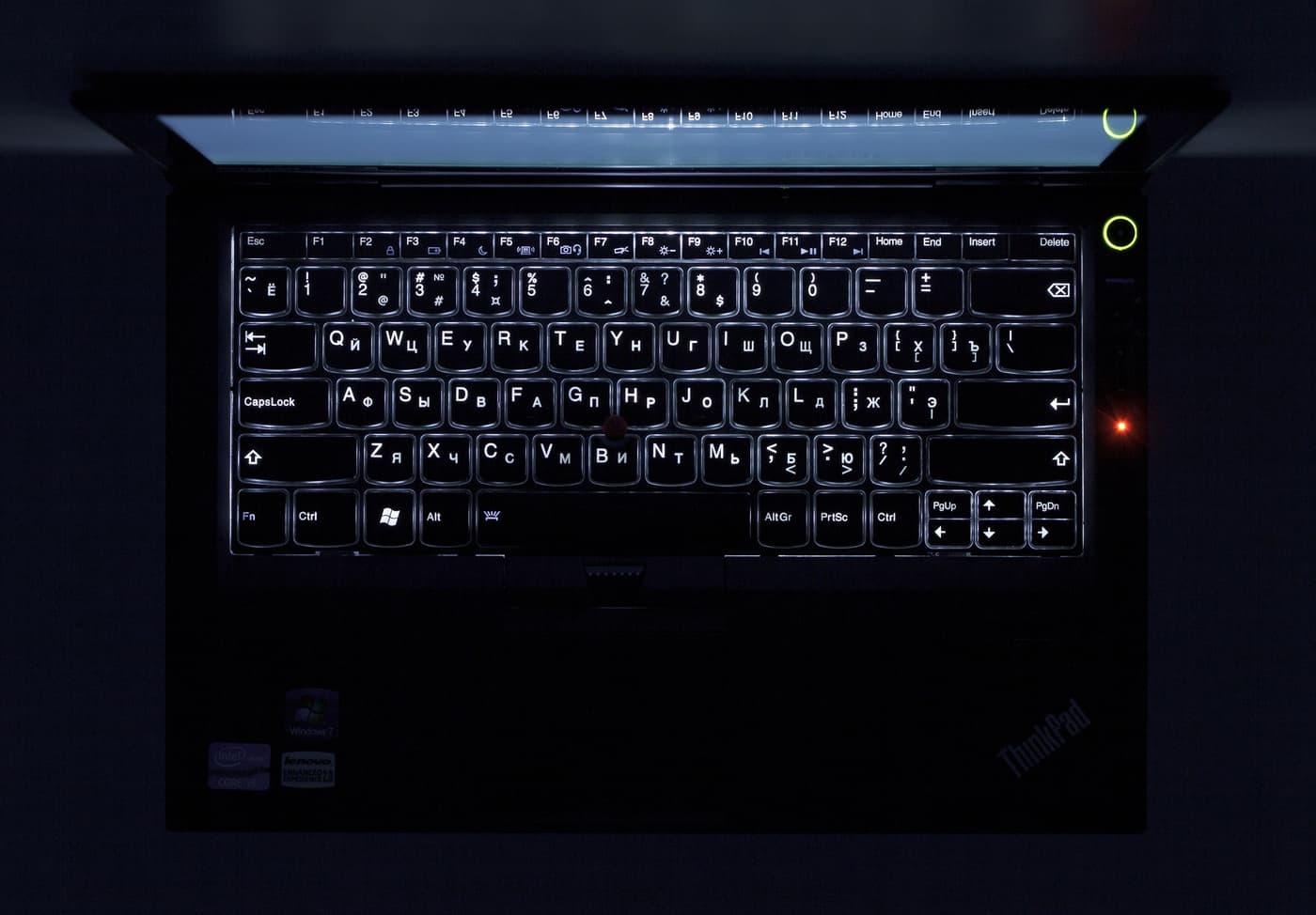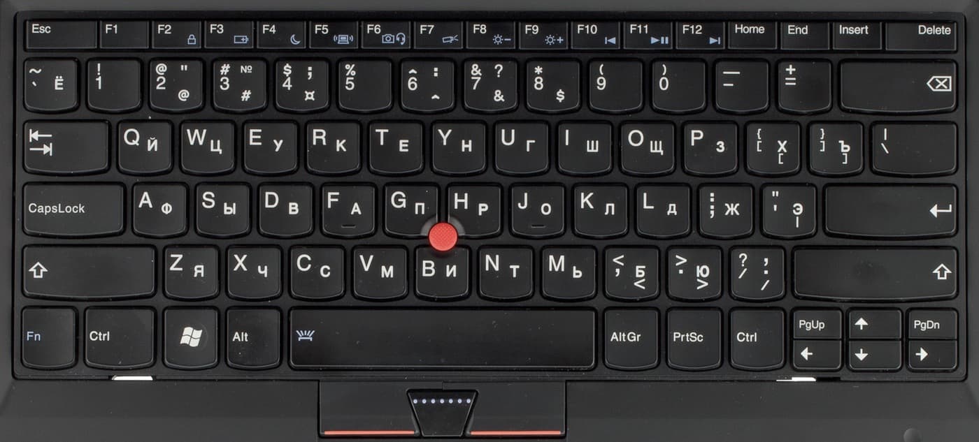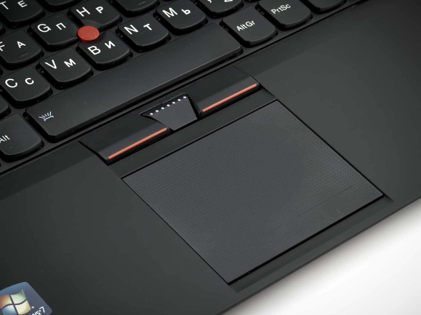 Традиционно для корпоративной линейки, клавиатура имеет подсветку (IBM имеет это решение в арсенале уже очень давно). Однако в Lenovo Thinkpad X1 подсветка клавиатуры сделана не традиционным способом, а в соответствии с модными тенденциями — снизу.