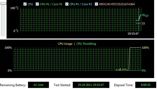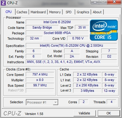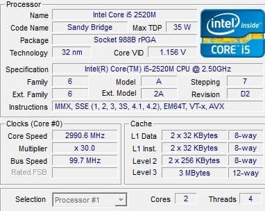 | Процессор | Intel Core i7-2620M, Core i5-2520M, Core i3-2310M (в тестируемой модели — Mobile DualCore Intel Core i5-2520M, 2,5 ГГц, до 3,2 ГГц в режиме Turbo Boost) | |