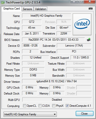 | Видеоподсистема | Intel HD Graphics 3000 (интегрированная) | |