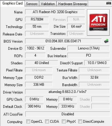 | Видеоадаптер | интегрированная ATI Radeon HD 3200 | ATI Radeon HD 3200 Graphics (336 MB) |