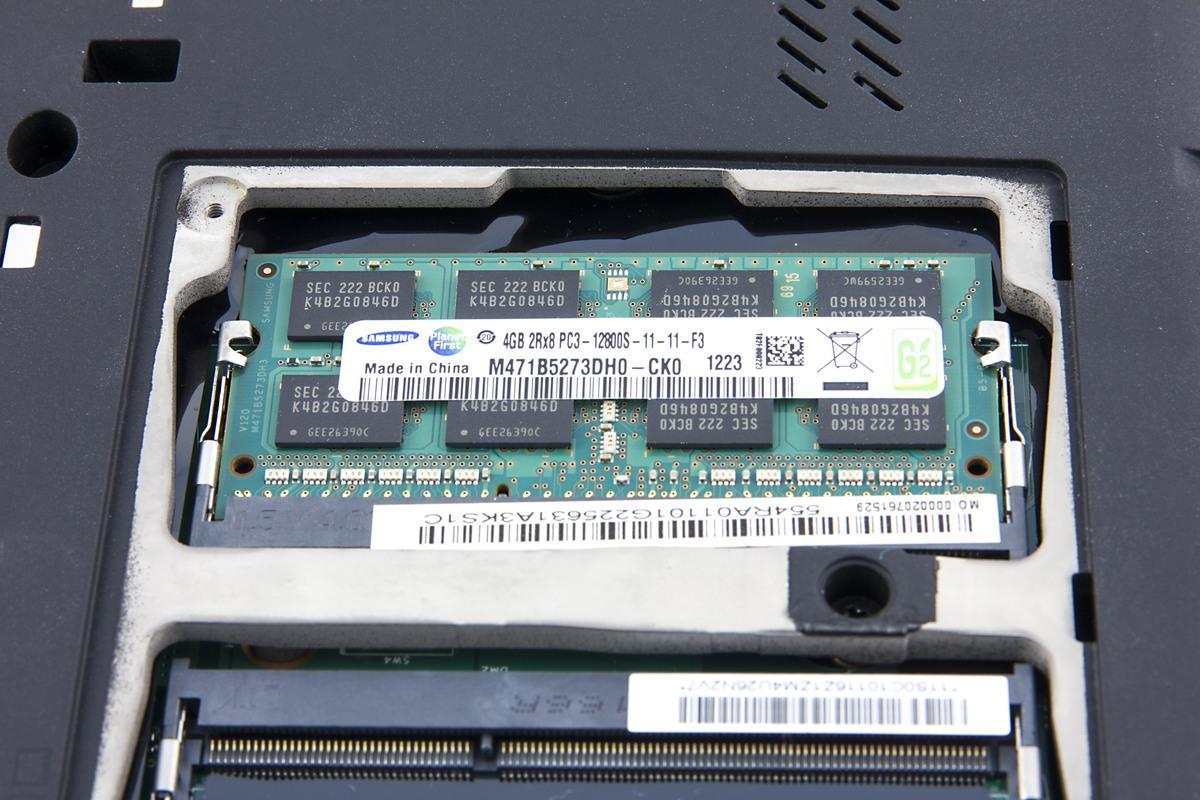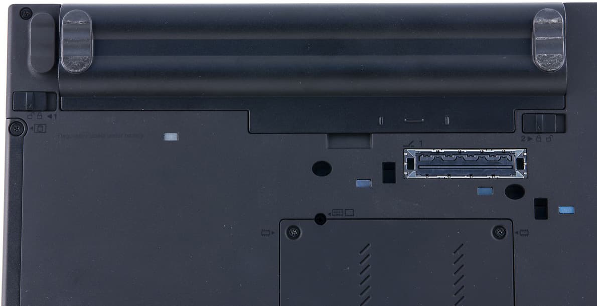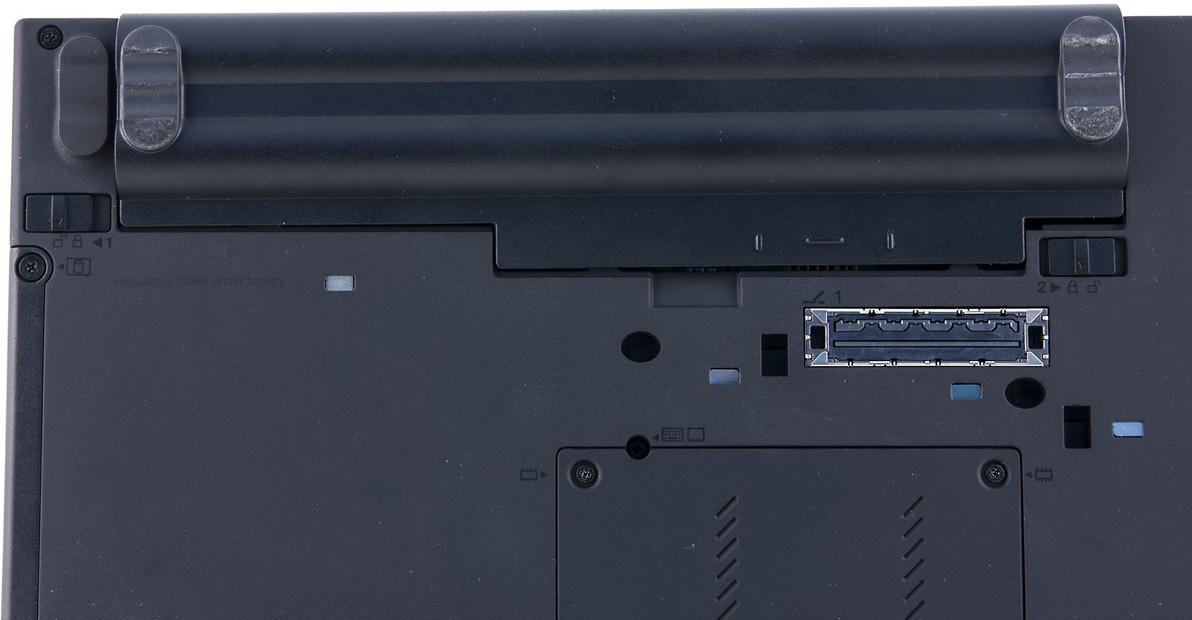 На дне всего один лючок, он служит для доступа к оперативной памяти. У этой модели два слота SO-DIMM, оба расположены под лючком.