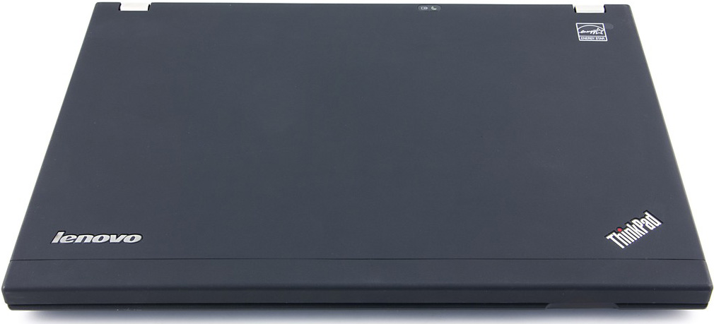 Верхняя крышка бархатисто-черная, с темным металлическим логотипом Lenovo (он сделан затемненным, но с благородным блеском) и серебристым (под металл) логотипом Thinkpad с красной точкой. Наклейку Energy Star здесь наклеили прямо на крышку, но на ней благоразумно сделано ушко для более легкого сдирания. Впрочем, я ее оставил на месте.