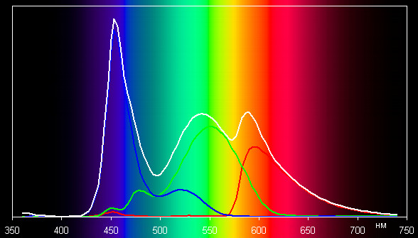 Видимо, светофильтры матрицы немного подмешивают компоненты друг к другу. Данный прием позволяет увеличить яркость экрана при тех же затратах энергии на подсветку.