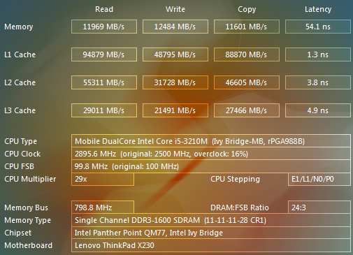 MSI GE70, использующий тот же процессор, в целом показал такой же уровень производительности, как и Lenovo Thinkpad X230 (кроме, понятно, случаев, когда тест задействовал ресурсы графического ядра — тут игровой GE70 с видеоадаптером NVIDIA не оставлял соперникам шансов). В то же время, этот ноутбук незначительно, но во всех тестах отставал от Lenovo Thinkpad X230. Причину этого я сейчас не готов назвать, тем более что разница может объясняться как каким-то одним фактором (например, чуть меньшей скоростью работы с памятью), так и целой их комбинацией. Впрочем, случаев, когда два ноутбука разных производителей с одинаковой платформой демонстрируют чуть отличающиеся результаты — довольно много.