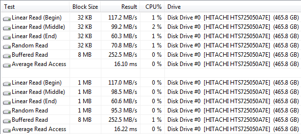 Показатели линейного чтения средние или чуть выше среднего для современного рынка. Про этот ноутбук не скажешь, что «все летает» — например, приложения ThinkVantage запускаются раздражающе долго (около 2-3 секунд для утилит, которые должны появляться мгновенно, вроде управления беспроводными сетями, и до 8-10 — утилита управления энергосбережением). Причем тормоза при запуске определяются именно жестким диском, но насколько конкретно ситуация изменится при установке SSD — сказать сложно.