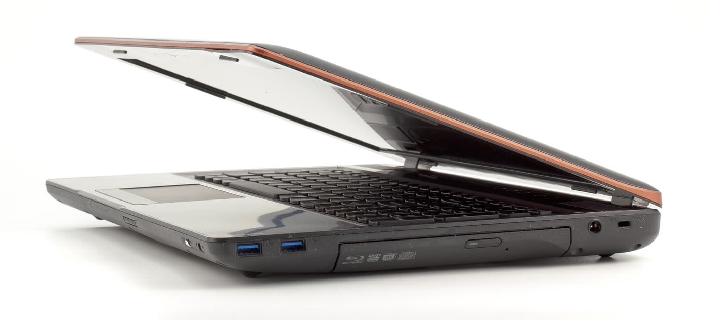 На правом боку — два разъема USB 3.0, расположенные близко к передней части ноутбука. Далее идет оптический привод Blu-ray, разъем для штекера питания и порт замка Кенсингтона.