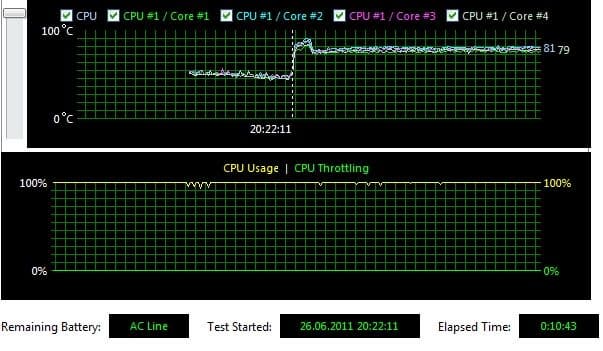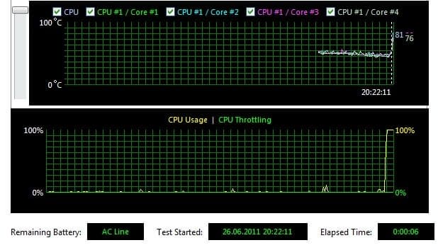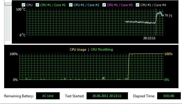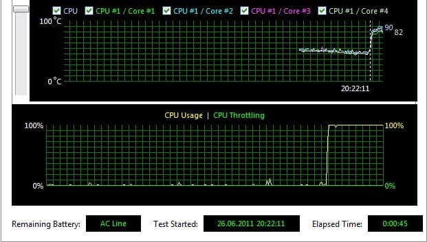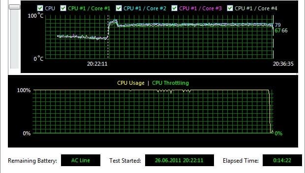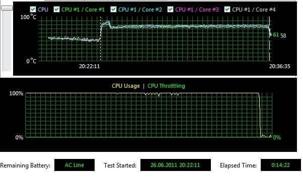 В Photoshop оба ноутбука управились за время меньше минуты, так что разница между ними минимальна, а Y570 справился даже чуть быстрее. Помимо того, этот тест проходит очень быстро, за это время температура процессора не успеет достичь критических значений.