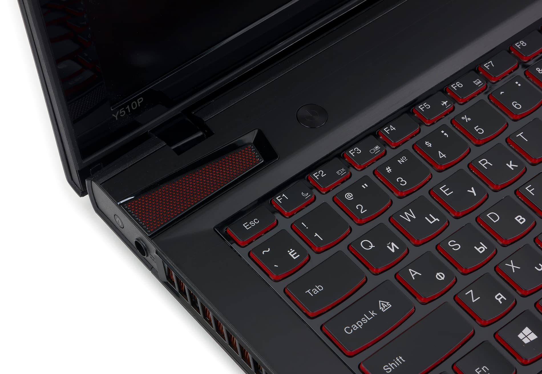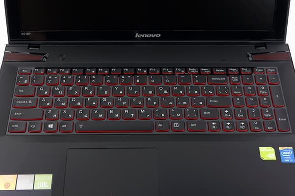 В ноутбуке Lenovo ThinkPad Y510P используется фирменная клавиатура AccuType островного типа с увеличенным расстоянием между клавишами и отдельным цифровым блоком NumPad. Ее особенность заключается в том, что нижняя боковая сторона клавиш немного закруглена, а поверхность клавиш не плоская, а имеет небольшую вогнутость. Сверху клавиши черные, а с боков — красные. Для клавиатуры реализована двухуровневая подсветка красного цвета. Клавиши подсвечиваются с боков, но белые буквы на клавишах также подсвечиваются и хорошо заметны в темноте.