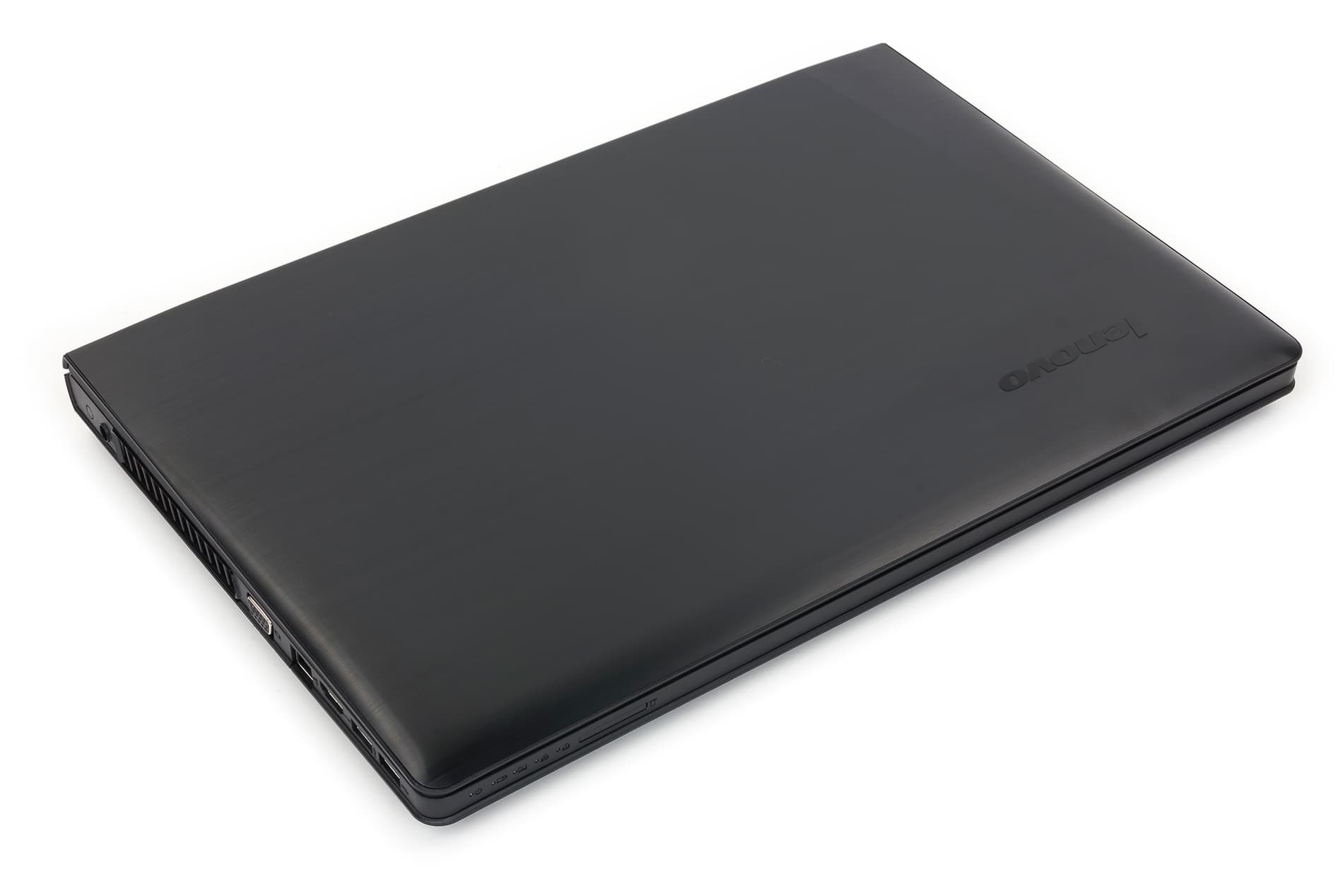 Крышка ноутбука сделана из шлифованного металла темно-серого, близкого к черному цвета. В одном углу крышки размещен серебристый логотип Lenovo. Нужно отметить, что крышка ноутбука очень жесткая и не прогибается при нажатии на нее.