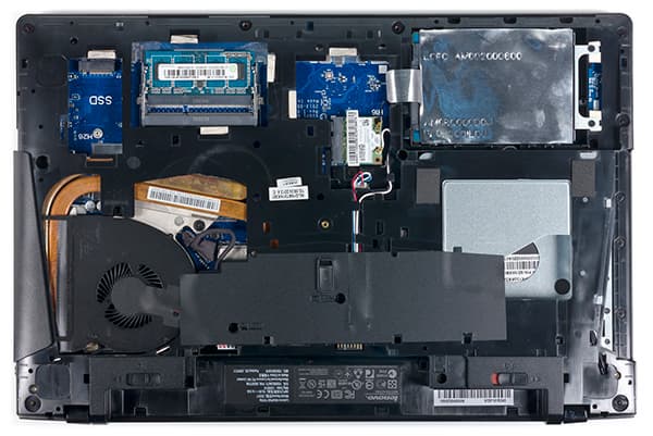 Одной из особенностей ноутбука Lenovo IdeaPad Y510P является возможность его разборки. Для этого необходимо просто открутить несколько винтиков и снять нижнюю панель корпуса. В результате этой операции можно получить доступ к системе охлаждения, накопителю, модулю беспроводной связи и модулям памяти.