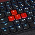 Игровые клавиши (WASD) выделены на клавиатуре в отдельную зону. В отличие от всех остальных клавиш, они красного цвета. Но есть тут и непонятный момент. Возможно, это особенность нашего (инженерного) сэмпла, однако, на клавишах WASD нет русских букв. На всех остальных клавишах есть, а на этих клавишах их нет.