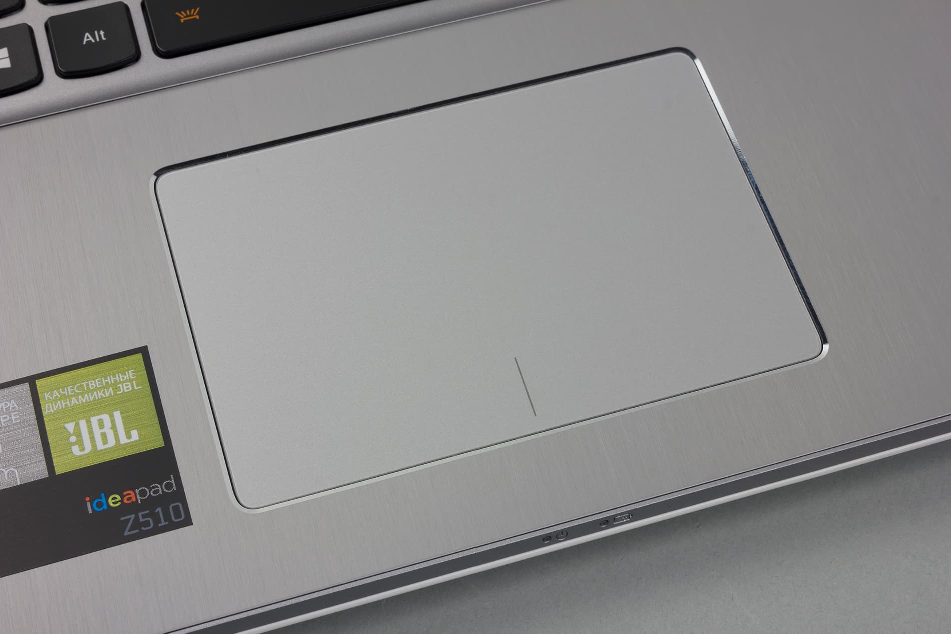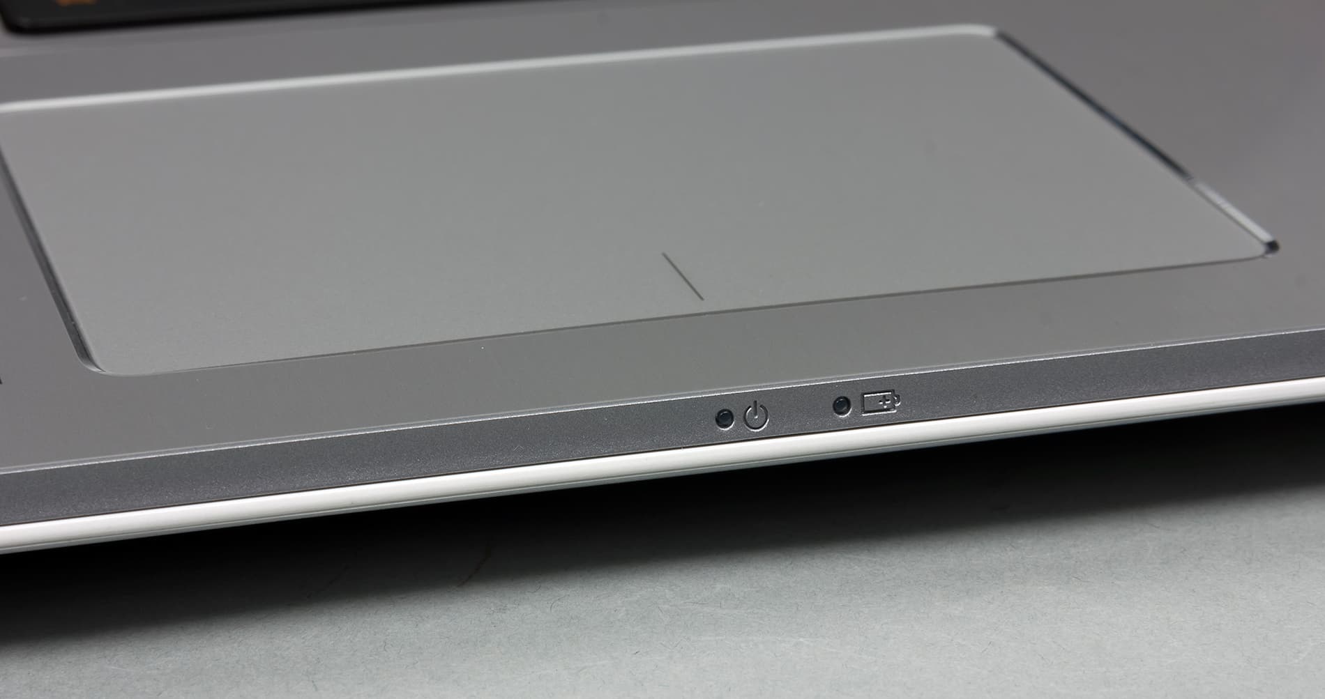 Сенсорная поверхность кликпада на ощупь гладкая (без шероховатого покрытия) и немного заглублена.