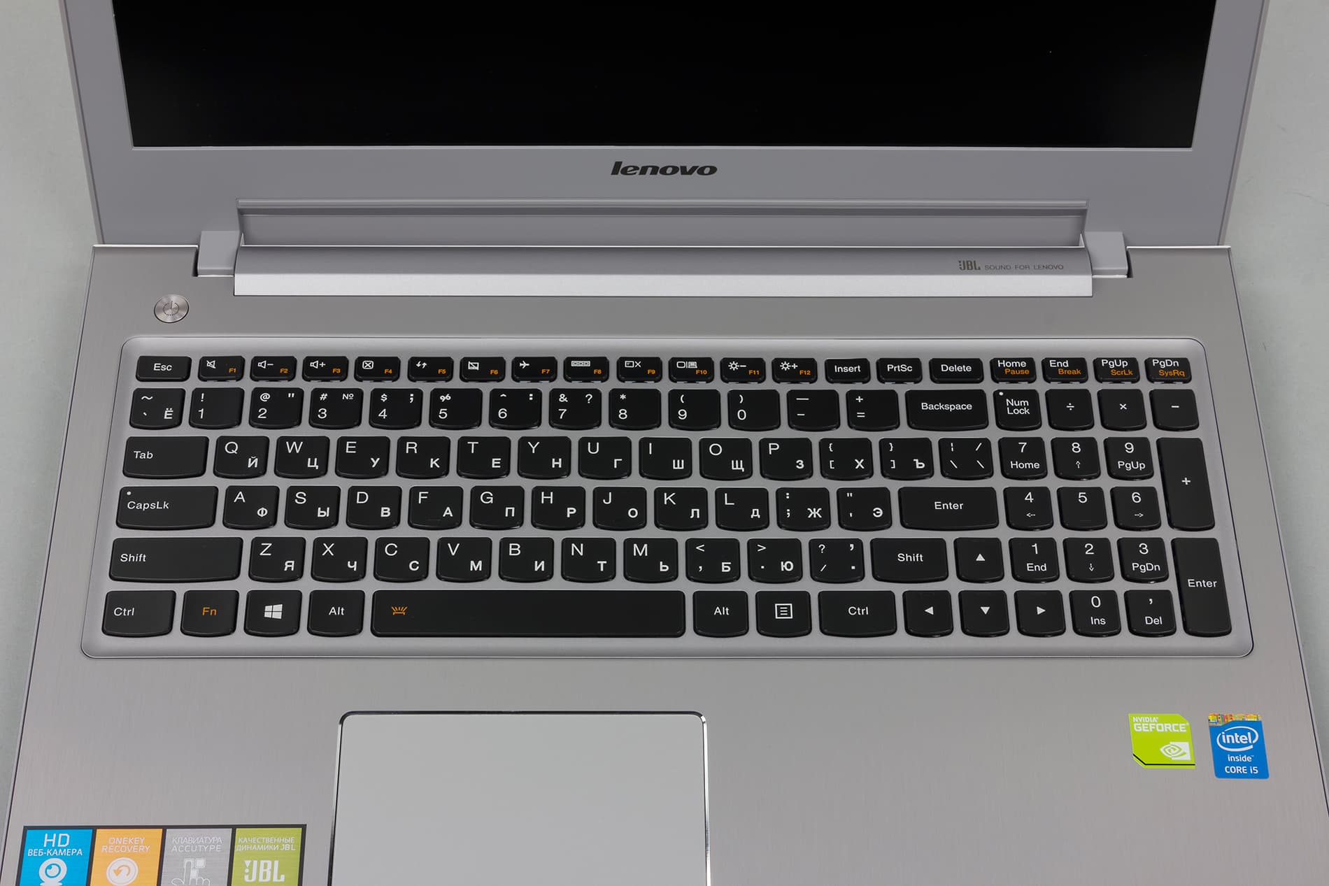 Клавиши на клавиатуре в этом ноутбуке черные, но подробно о клавиатуре, как и о тачпаде, мы расскажем чуть позже.