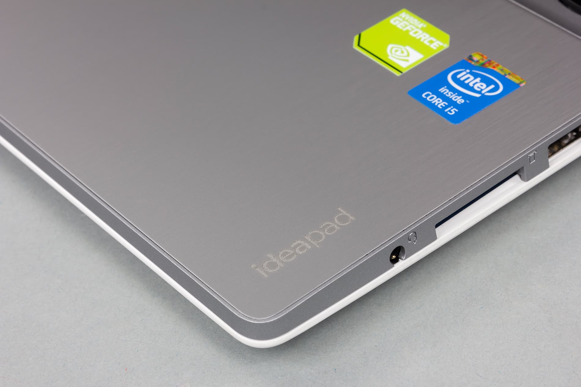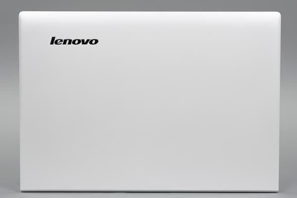 В одном углу крышки размещен традиционный серебристый логотип Lenovo. Нужно отметить, что крышка ноутбука не очень жесткая, и при нажатии на нее на экране появляются характерные пятна и волны.