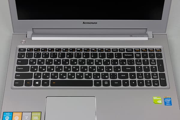В ноутбуке Lenovo IdeaPad Z510 используется фирменная клавиатура AccuType островного типа с увеличенным расстоянием между клавишами и отдельным цифровым блоком NumPad. Ее особенность заключается в том, что клавиши немного закруглены снизу. Сами клавиши черные, для них предусмотрена белая подсветка (это опциональная функция, которая реализована не во всех моделях).