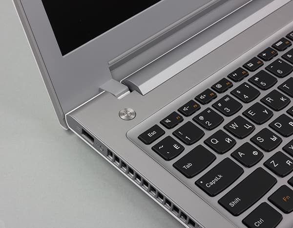 Из недостатков дизайна корпуса можно отметить острый край, образованный рабочей поверхностью и передней гранью. Этот край не имеет никакого скругления и даже фаски, что создает неудобство при работе с ноутбуком, поскольку острый край натирает ладони в области запястья. Отметим, что подобный дизайн в ноутбуках Lenovo используется достаточно часто.