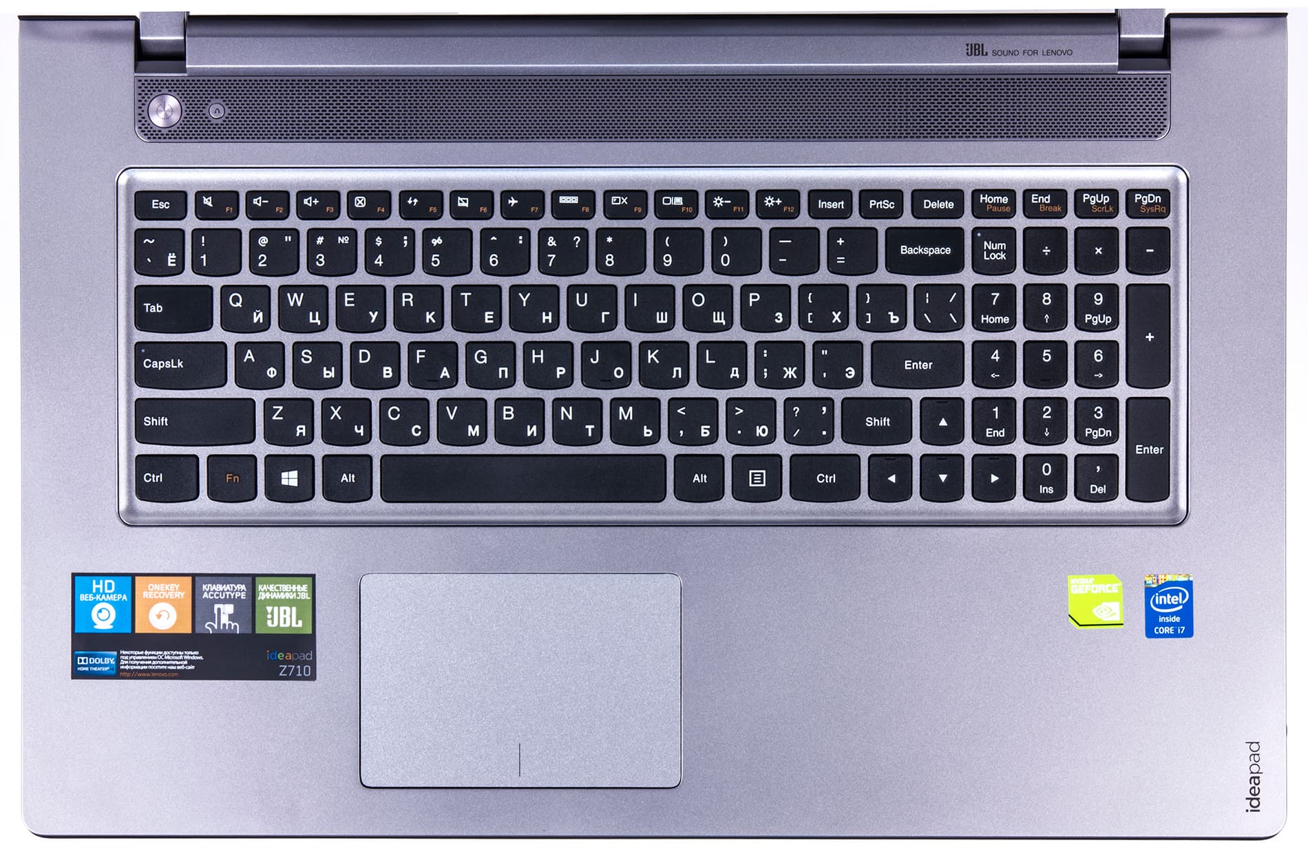 Также отметим, что в ноутбуки Lenovo IdeaPad Z710, судя по информации на сайте производителя, могут комплектоваться клавиатурой с подсветкой. Однако, в нашем варианте подсветка отсутствовала.