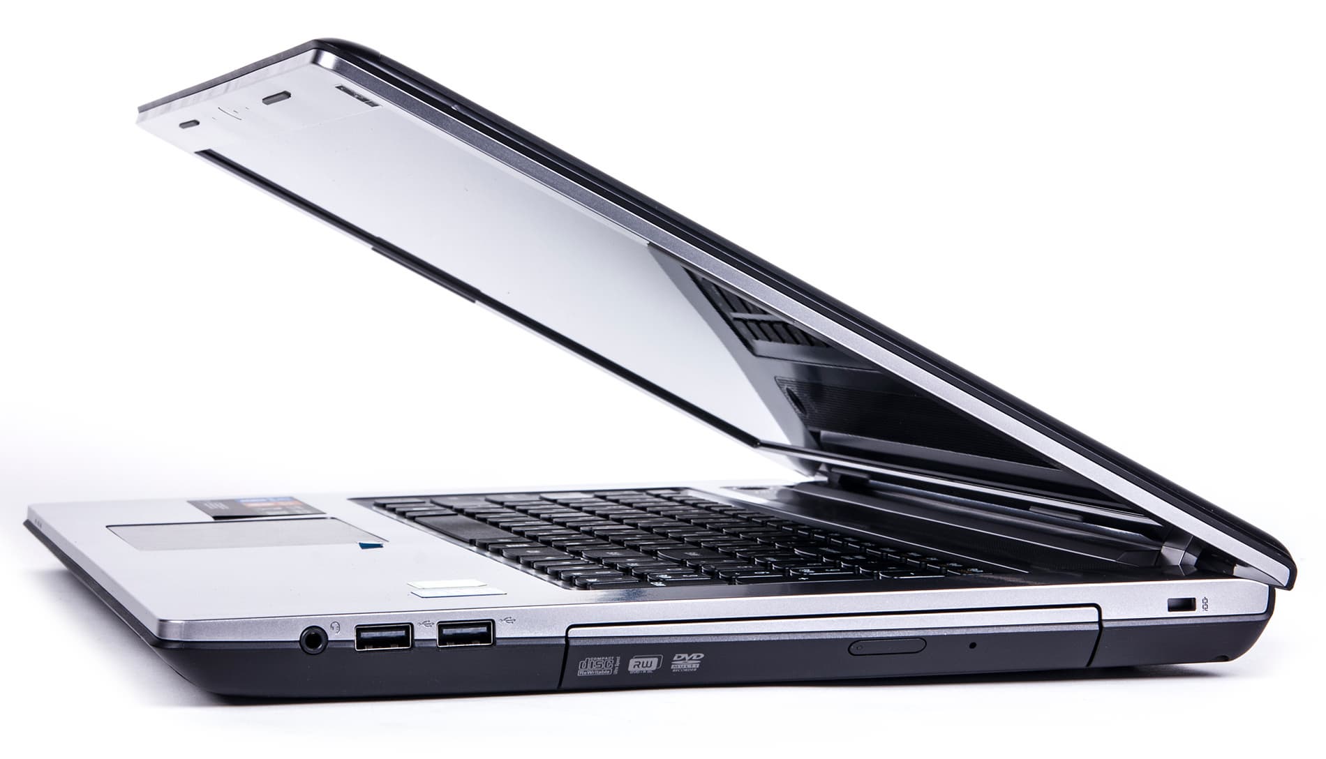 На правом торце корпуса ноутбука расположены два порта USB 2.0, комбинированный аудиоразъем типа миниджек, лоток оптического привода и разъем для кенсингтонского замка.