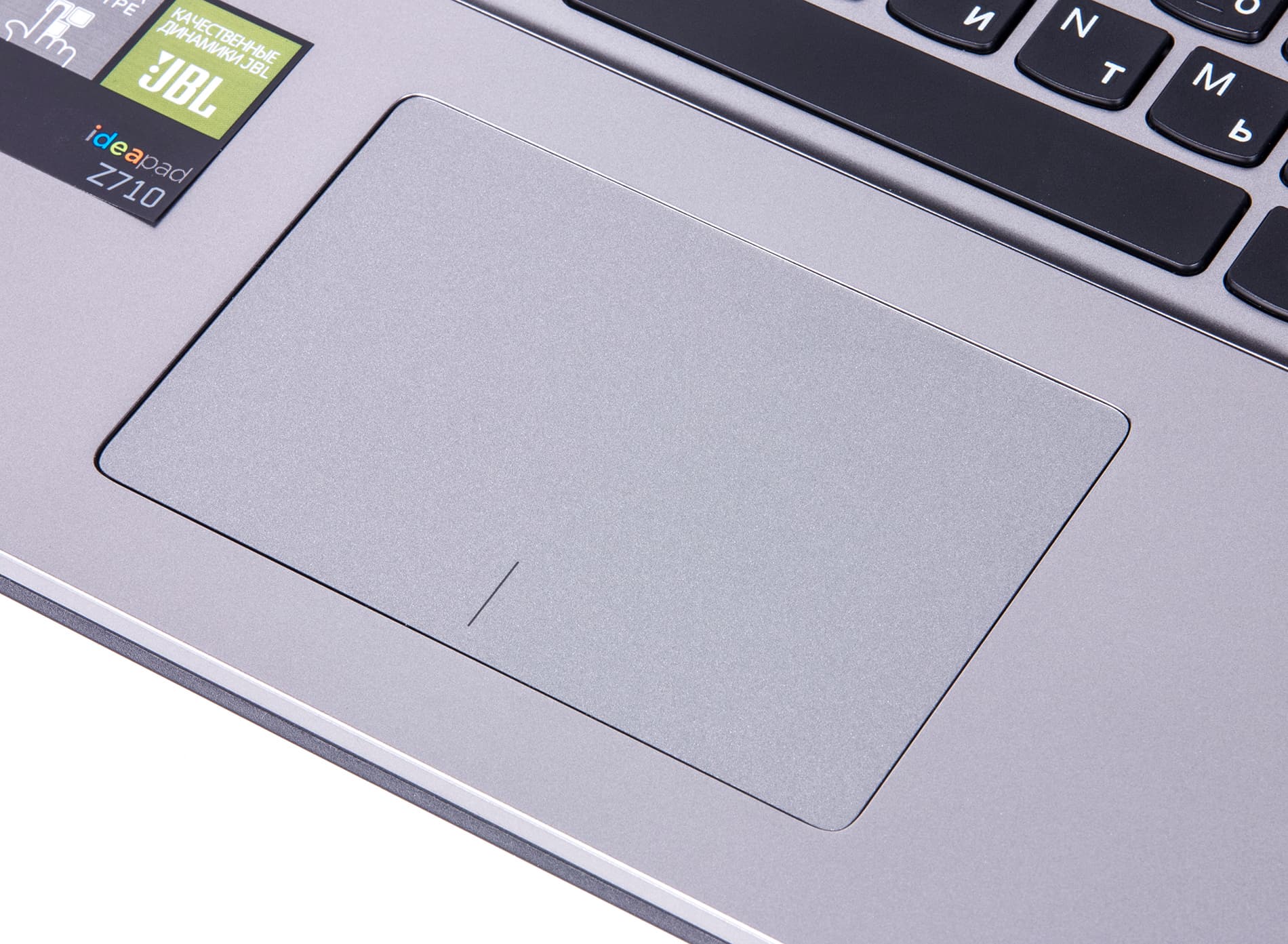 В ноутбуке Lenovo IdeaPad Z710 используется тачпад типа кликпада с имитацией нажатия на клавиши. Размеры его рабочей области составляют 104×70 мм, что вполне достаточно для комфортной работы.