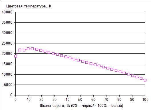 Цветовая температура у ЖК-экрана ноутбука Lenovo IdeaPad Z710 оставляет желать лучшего. Она нестабильна по шкале серого и увеличивается при переходе к темным тонам.