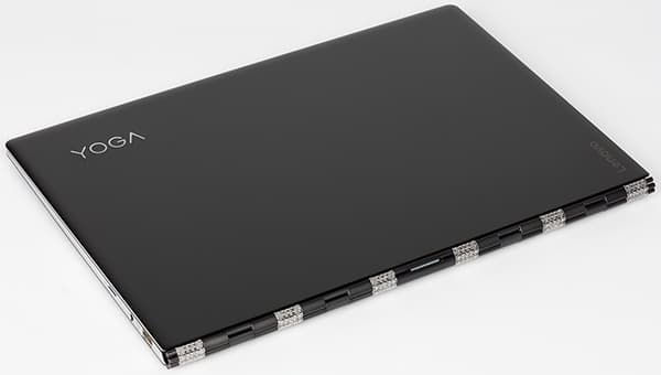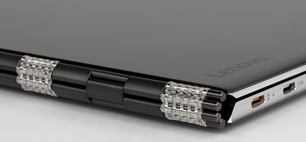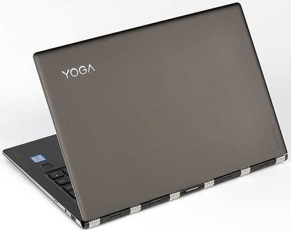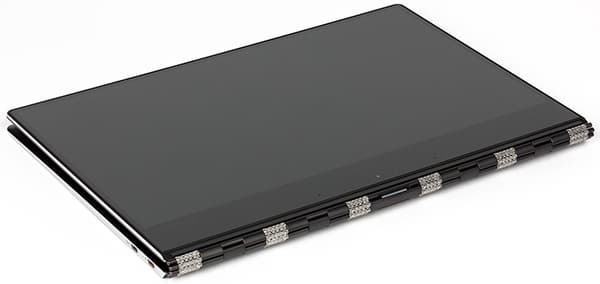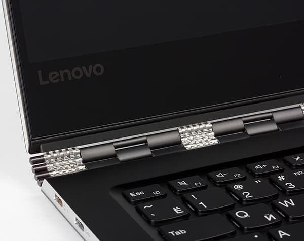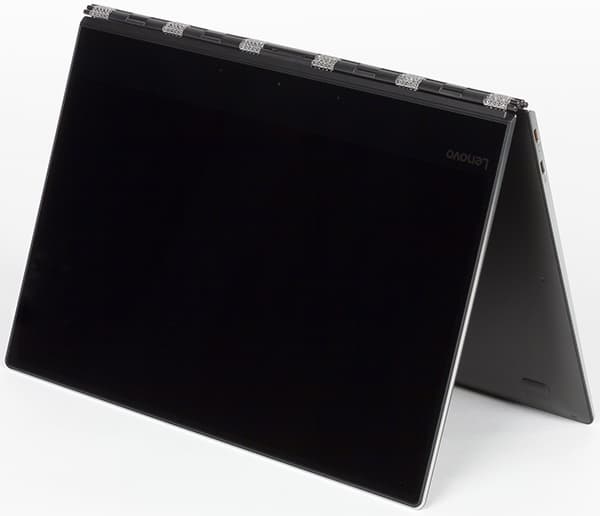 Такая система позволяет переворачивать экран на угол в 360 градусов, превращая его в планшет. Кроме того, для просмотра фильмов удобен режим «шалаша». Именно за эту особенность конструкции Lenovo Yoga 910 называют ноутбуком-трансформером.