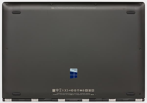 Крышка с экраном у ноутбука очень тонкая, ее толщина составляет всего 5 мм. На обратной стороне крышки есть лишь зеркально-серебристая надпись Yoga. Окантовка экрана также серебристого цвета.