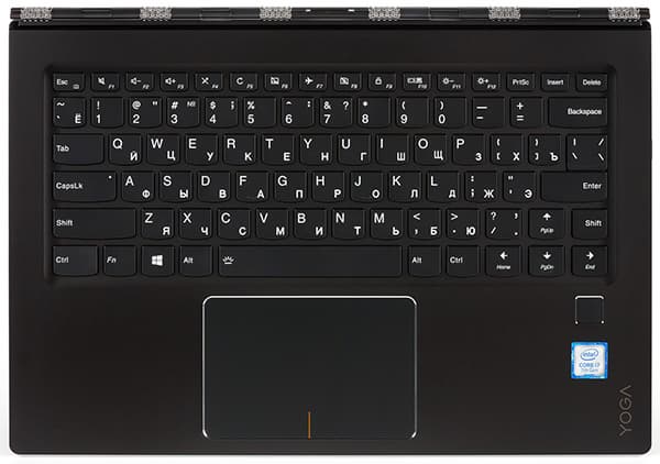 В ноутбуке Lenovo Yoga 910 используется фирменный тип клавиатуры Lenovo c изогнутыми (слегка закругленными) нижними гранями клавиш.