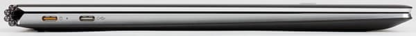 На правом торце имеется порт USB 3.0 (Type-A) с функцией Power Share. Этот порт может использоваться для зарядки мобильных гаджетов, даже если ноутбук выключен. Согласно нашим измерениям, у выключенного ноутбука этот порт может выдавать ток как минимум 1,48 А при выходном напряжении 4,8 В. Также на правом торце корпуса расположен комбинированный аудиоразъем, кнопка включения питания, дополненная светодиодным индикатором, и углубленная кнопка Lenovo Novo для восстановления ноутбука.
