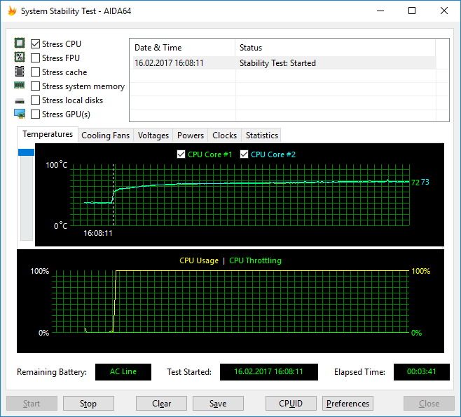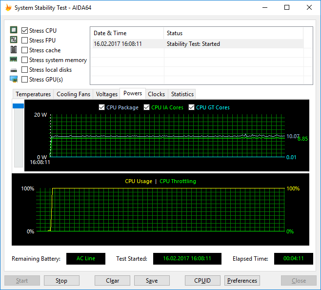 Температура ядер процессора в этом режиме загрузки стабилизируется на уровне 73 °С, а мощность энергопотребления процессора — не более 10 Вт.