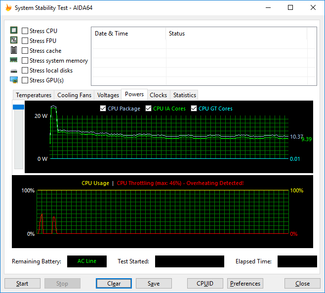 Вообще, складывается ощущение, что при любой длительной загрузке процессора его частота устанавливается на таком уровне, которому соответствует температура в 70-75 °С, а мощность энергопотребления составляет 10 Вт.