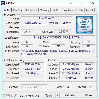 | Процессор | Intel Core i7-7500U (SoC) | |
