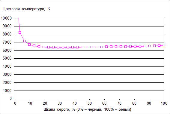 Цветовая температура ЖК-экрана ноутбука стабильна по всей шкале серого и составляет 6500 К.