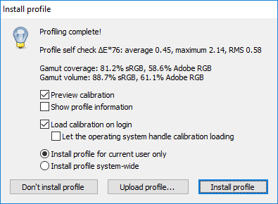 Цветовой охват ЖК-экрана в ноутбуке покрывает 81,2% пространства sRGB и 58,6% Adobe RGB, а объем цветового охвата составляет 88,7% от объема sRGB и 61,1% от объема Adobe RGB.