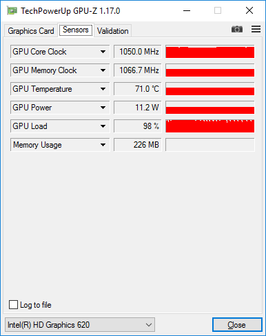 В режиме стрессовой загрузки (Furmark) графическое ядро работает на частоте 1050 МГц.