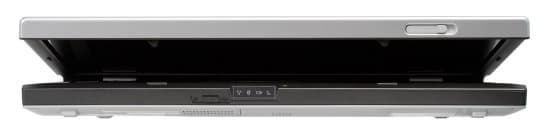 Передняя панель не имеет никаких портов, что хорошо — из ноутбука вперед не торчат кабели, за которые можно зацепиться, его можно упирать торцом в живот и пр. Помимо индикатора здесь же расположен выключатель беспроводных интерфейсов (один на все интерфейсы, то есть выключает сразу и WiFi, и Bluetooth).