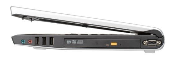 На правом боку расположен выход на внешний монитор, оптический привод (DVD-RW с возможностью записи двухслойных дисков), три вертикально расположенных разъема USB и аудиоразъемы — микрофонный вход и выход на наушники.