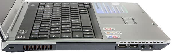 После извлечения ноутбука из красочно оформленной коробки, на некоторое время забываешь, что перед тобой компьютер, который надо тестировать — корпус действительно красив. Первое желание — срочно снять защитные наклейки. Сняли (ненадолго — ноутбук, к сожалению, надо возвращать), теперь можно рассмотреть LM50 без помех. Да, применительно к этой модели «элегантность» — не просто слово. Тонкий корпус, крышка из серебристого сплава с черной пластиковой окантовкой. Нижняя крышка — из сплава магния и углеродного волокна. Смотрится дорого, но достаточно строго — без лишнего «украшательства»