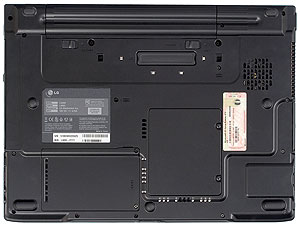 На днище — крышки отсеков жесткого диска и модулей памяти, разъем порт-репликатора под резиновой заглушкой и защелки аккумуляторной батареи. Единственное отличие от модели LW70 — отсутствие сабвуфера. Порт-репликатор в качестве опции присутствует, так что расположение портов логического объяснения, по-моему, не находит.