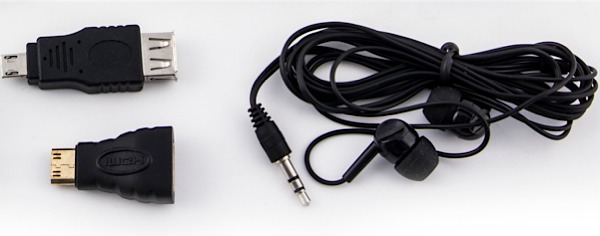 Мы уже привыкли к тому, что планшеты и бюджетные смартфоны комплектуются весьма посредственными наушниками. Но в данном случае все оказалось совсем не так плохо, как обычно. Наушники M-Way вполне пригодны для использования, разве что им немного не хватает низких частот. Но сразу отправлять их в мусорку точно не надо. Что касается переходников, то это HDMI—Mini-HDMI (благодаря ему обладателям кабеля HDMI не придется покупать еще и кабель Mini-HDMI), а также Micro-USB—USB 2.0. Этот переходник позволяет подключить к планшету флэшку, мышку или клавиатуру.