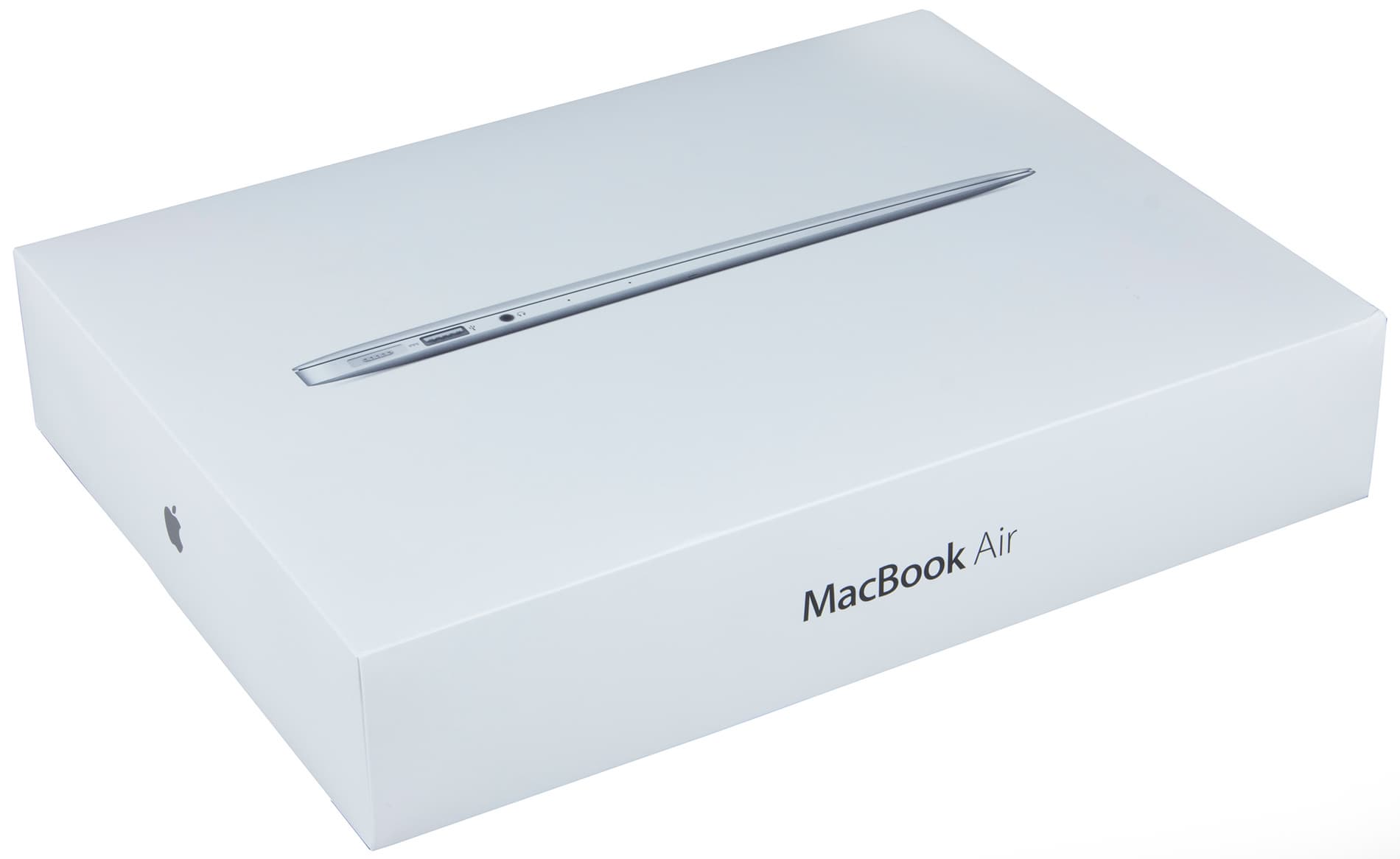 13-дюймовый ноутбук MacBook Air имеет стандартную для ноутбуков Apple комплектацию. Поставляется он в массивной коробке без ручки. Габаритные размеры коробки составляют 360×265×70 мм, а ее масса — 2,2 кг.