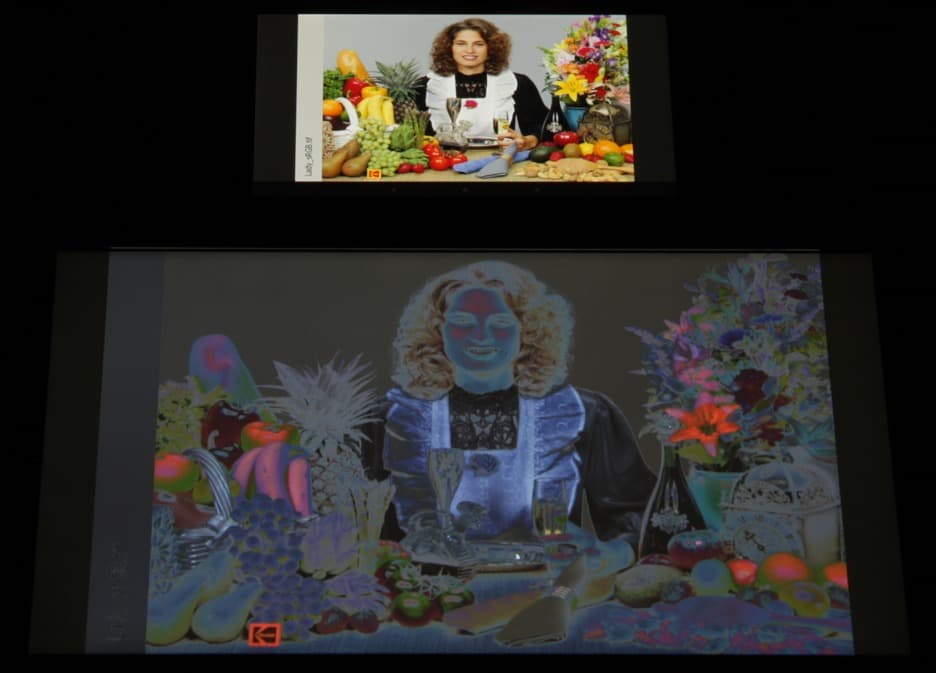 Цвета выворачиваются наизнанку. Черное поле при отклонении взгляда от перпендикуляра к экрану высветляется довольно сильно. Для примера приведем лучший случай — отклонение вниз (тоже 45 градусов):