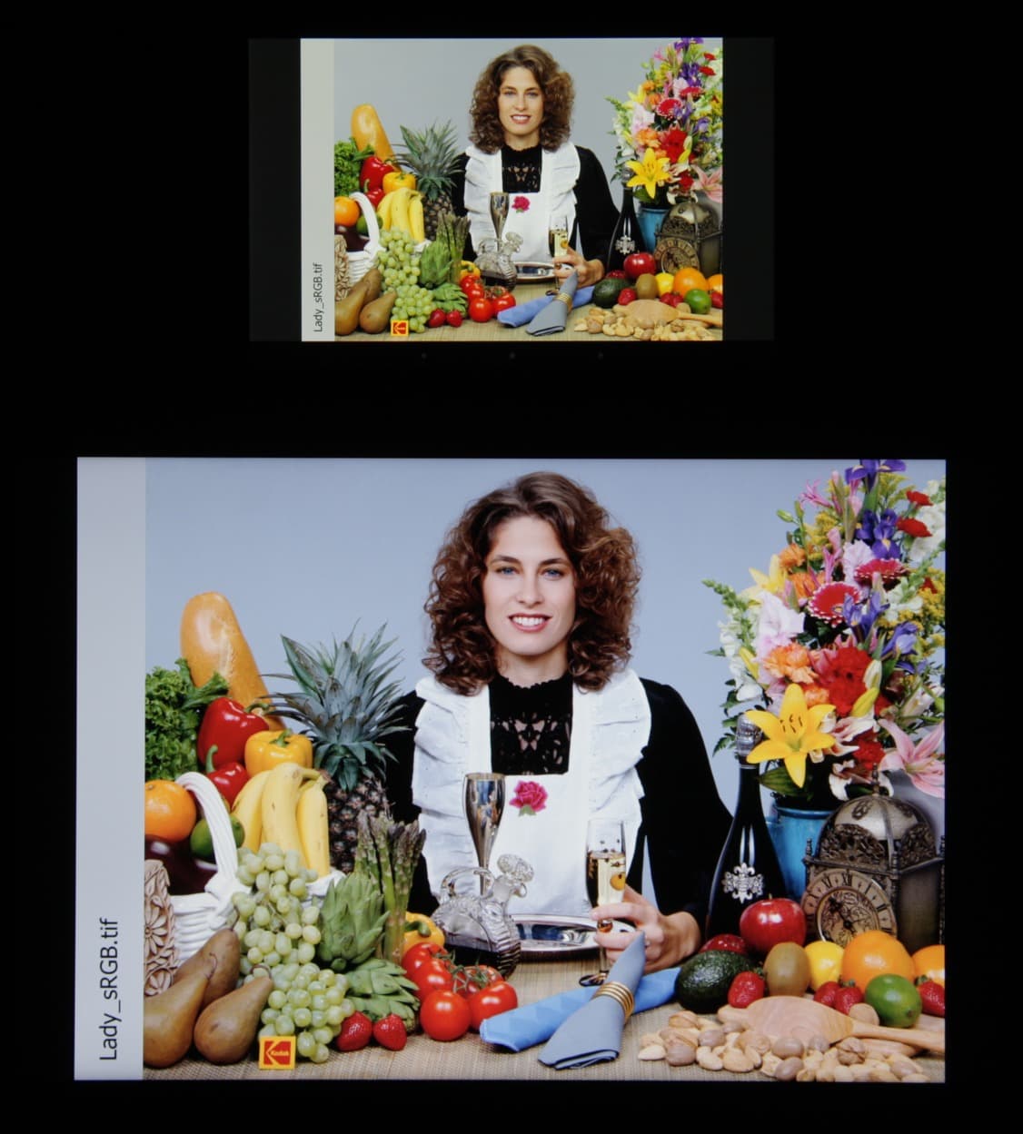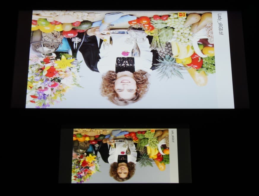 Видно, что цвета на экране MacBook Air заметно искажены и изображение менее насыщенное. И белое поле: