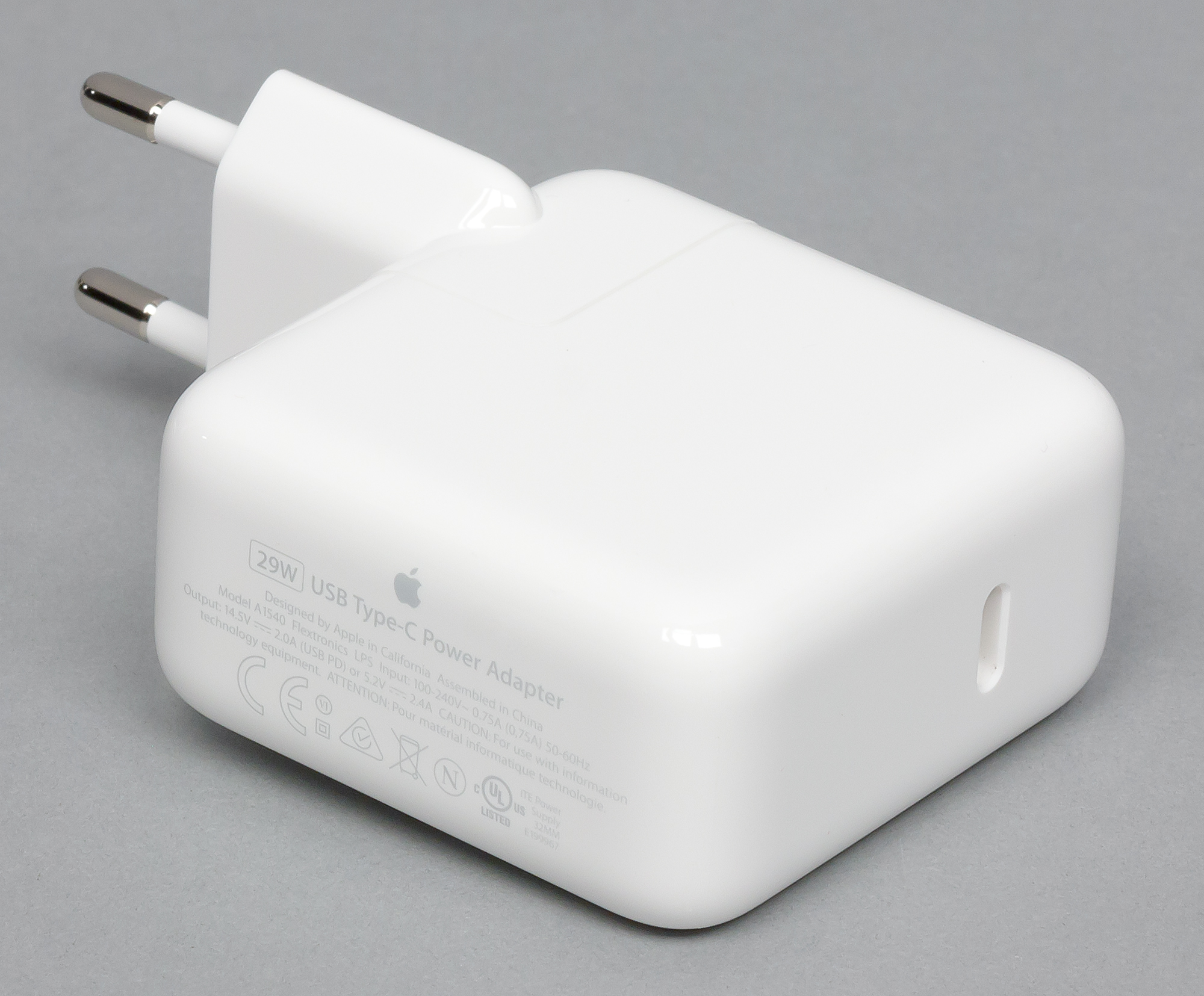 Зарядное устройство идентично прошлогоднему. Характеристики его следующие: 29 Вт, 5,2 В 2,4 А.